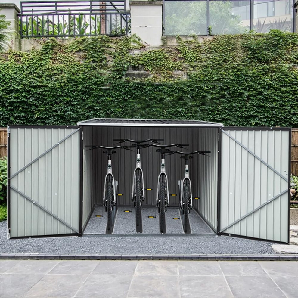 Panana Metal Garden Shed Storage Bike Shed Pent Tool Shed House Galvanized Steel 4 Removable Gravity Locking Racks Can Put 4 Bicycles (4R)