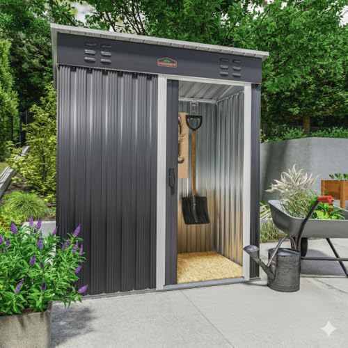 GARDEBRUK® Garden Shed | 5x3' | 1.5m² | Outdoor Storage for Garden Furniture Garden Tools | Wheelie Bin Storage | Log Store | Bike Shed House | Pent Roof, Sliding Door | 185x165x90cm | Anthracite Grey