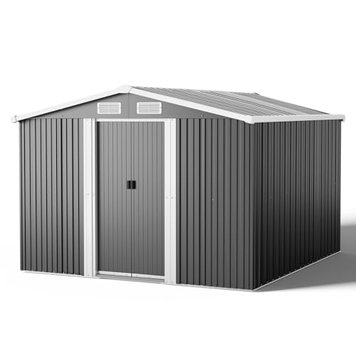TANGZON 8x6FT/9x6FT/11x8FT Metal Garden Shed, Galvanized Roof Tool Storage House with Lockable Doors & 4 Vents, Outdoor All-Weather Bike Shed (11x8FT, 4 Vents, Dark Grey)