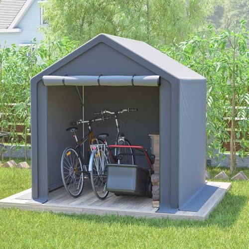 Outopee 8ft x 8ft Outdoor Storage Shed, Garden Storage Shed Tent with Roll-Up Zipper Door and Galvanized Steel Frame, Waterproof Carport for Motorcycle, Bike, Garden Tools, Grey