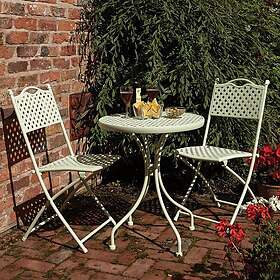 Home Cream Bistro Set Outdoor Patio Garden Furniture Table and 2 Chairs Metal Fr