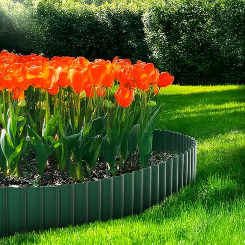 Garden Mile Green Garden Border Edging 9M - Easy Install - Durable & Flexible Garden Edging - 15CM Tall - Weather Resistant Landscape Dividers - Plastic Border Edging Roll