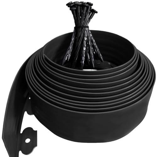Lawn Garden Edging Border with Heavy-Duty Ground Stakes 32ft | 10m Black 6CM High Flexible Flower Bed Edge and Reinforced Plastic Pegs, Professional Landscape Dividers, All Weather Resistant