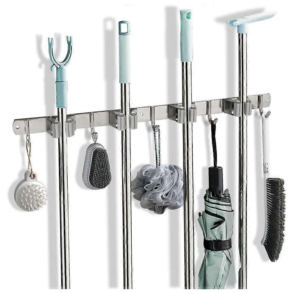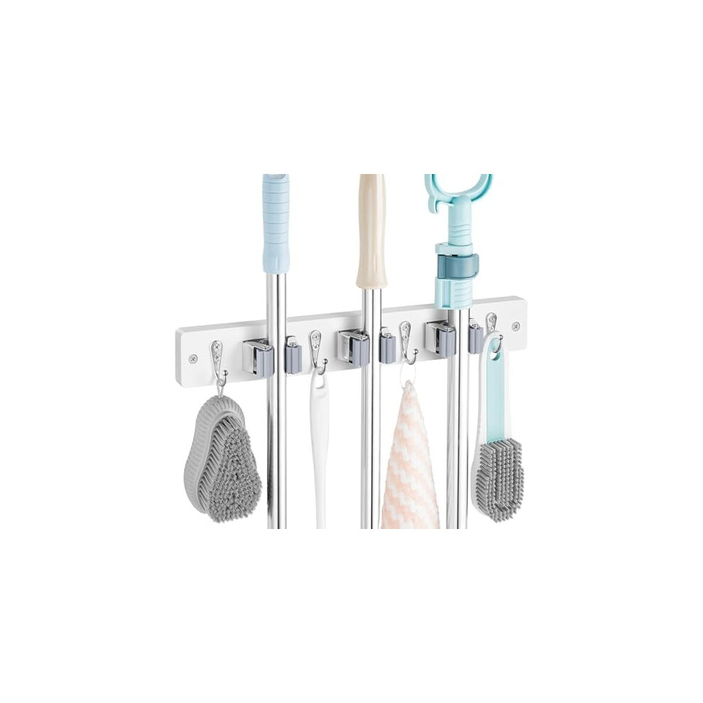 (As show, One size) with 4 Racks 5 Hooks, Brooms Mops Brushes Organiser Rack, for Kitchen Closet Garage Garden