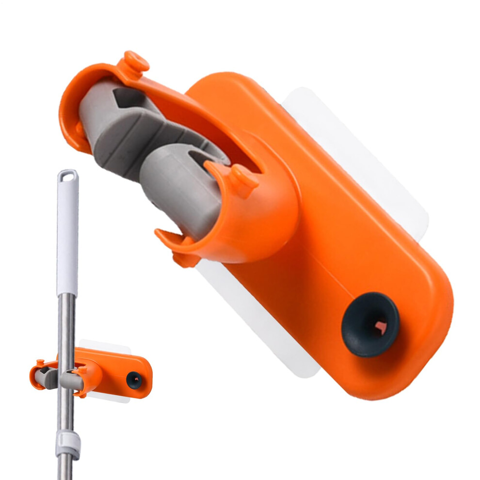 Utility Hooks for Brooms and Mops, Wall-Mounted Mop Holder, Heavy-Duty Adhesive Rack for Garage, Laundry, Garden, Orange