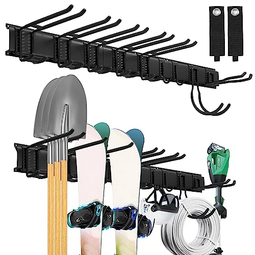 Garage Garden Wall Mount, Tool Storage Stand with Adjustable Metal Hook, Yard Tool System, for Ski Equipment Hangers, Chairs, Brooms, Rakes, Shovel Kit Rack