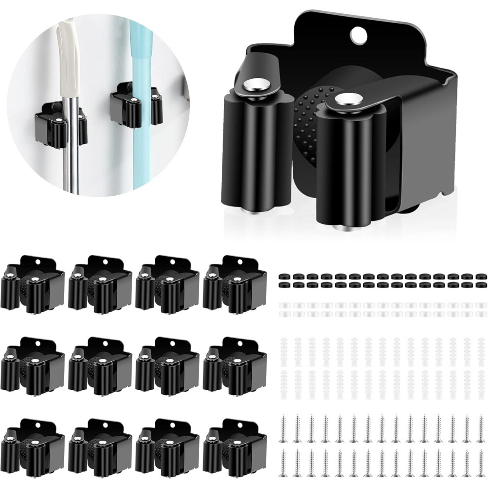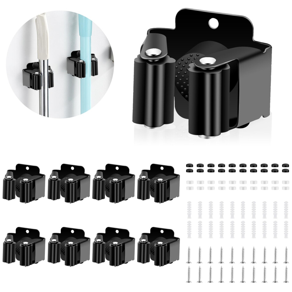 Hejo 10 Pack Mop Broom Holder, Heavy Duty Brush Holder Wall Mounted, Stainless Steel Mop and Brooms Holders Storage Rack Brush Organiser Tidy Clamp for Garden Garage Bathroom(Black)