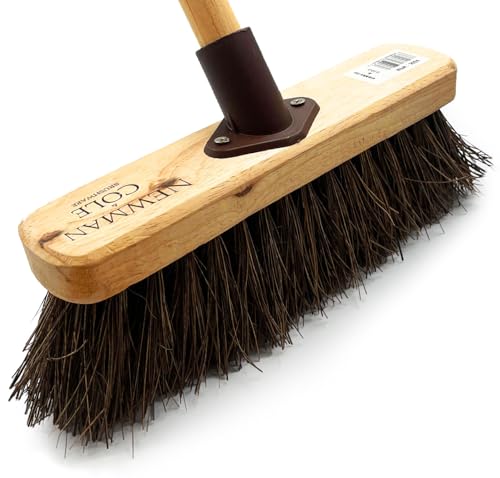 Broom Outdoor Yard Broom 10” Stiff Sweeping Brush with Wooden Handle Natural Bassine Hard Bristles Garden Brooms for Wet and Dry Cleaning, Garden, Decking, Warehouse