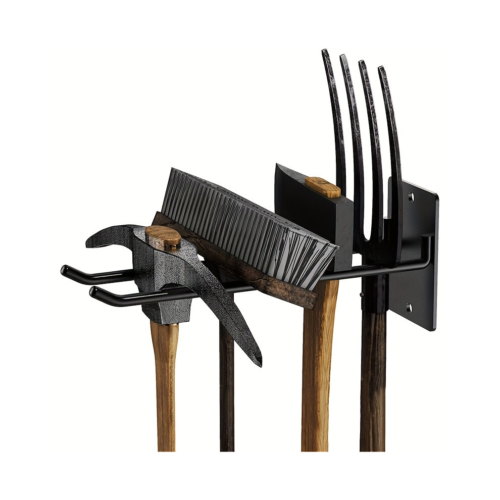 Multi-Purpose Garden Tool Rack Sturdy Iron Wall-Mounted Hook Set for Organizing Shovels, Rakes, and Brooms
