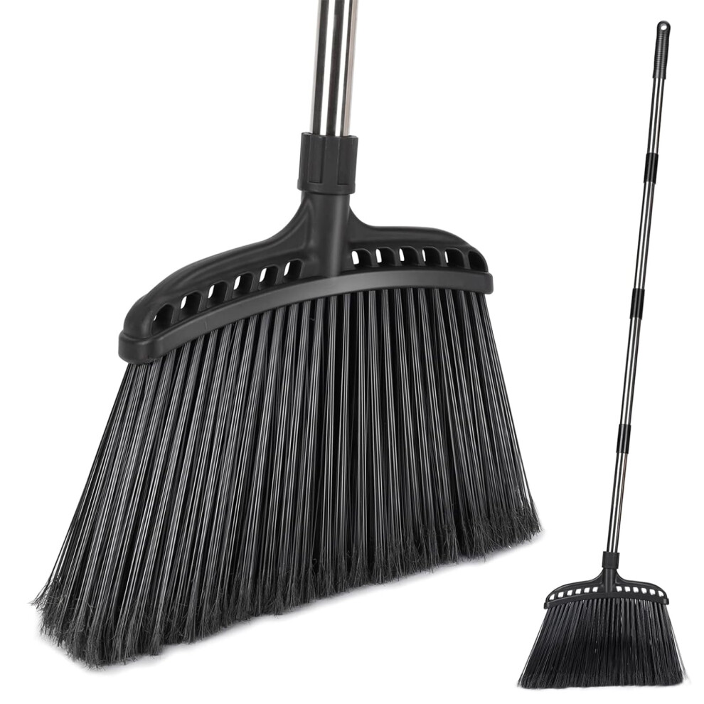 MASTERTOP Heavy Duty Broom, Outdoor Broom with Stiff Bristles & 142cm Long Handle, Garden Brooms Sweeping Brush for Patio Garage Home Lobby Concrete Courtyard Indoor, Yard Brush Broom - Black