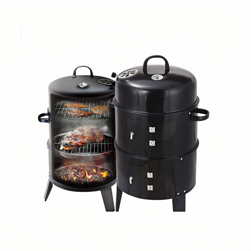 Outdoor Double Decker Barbecue Charcoal Braiser Smoker for Patio Garden Black 2-Burner Design Heavy-Duty Steel Construction
