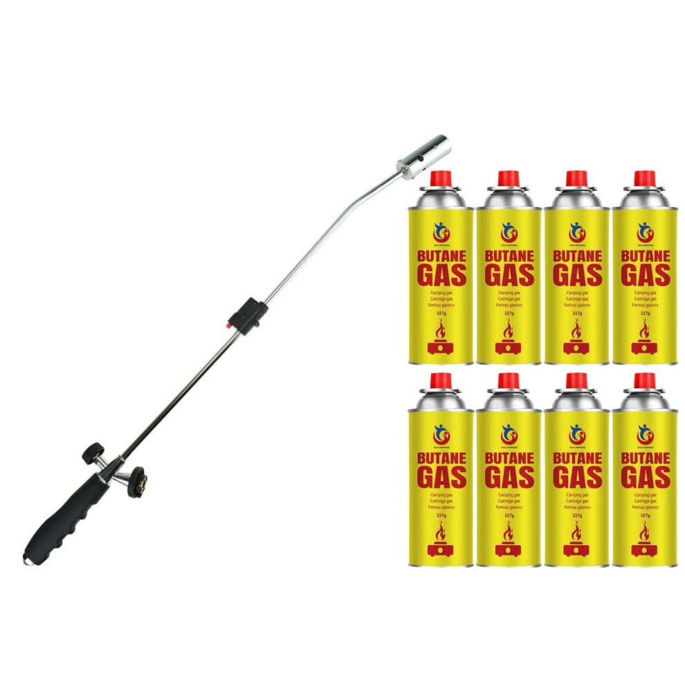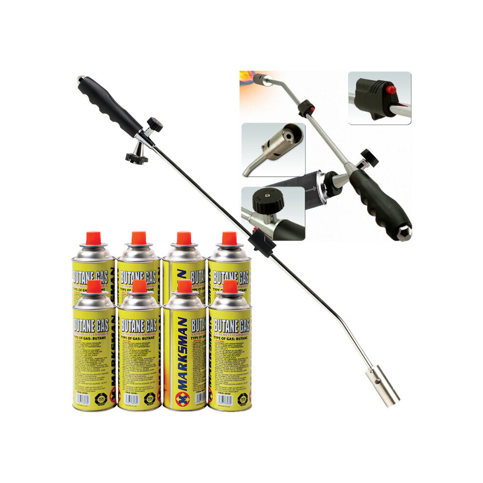 WEED WAND + 8 BUTANE GAS CANISTER BLOWTORCH GARDEN WEEDS KILLER BURNER