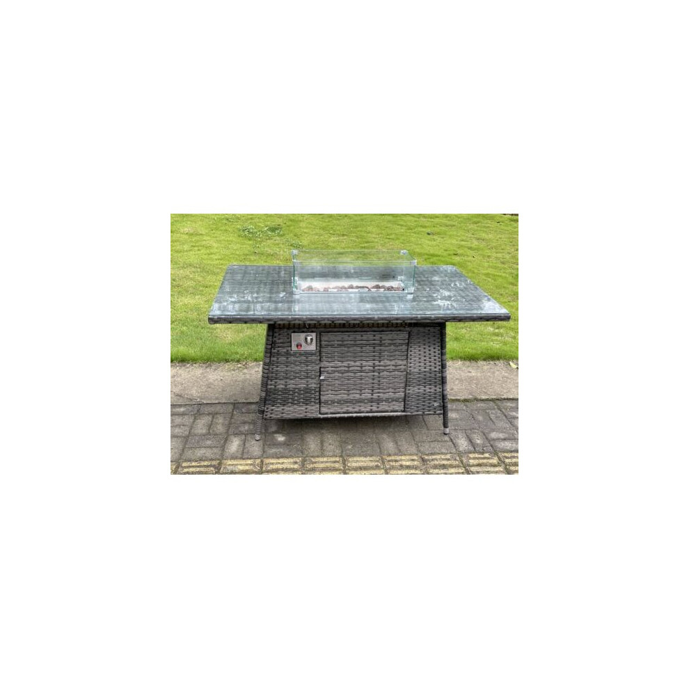 Fimous Outdoor Rattan Gas Fire Pit Dining Oblong Table Gas Heater Burner Garden Furniture
