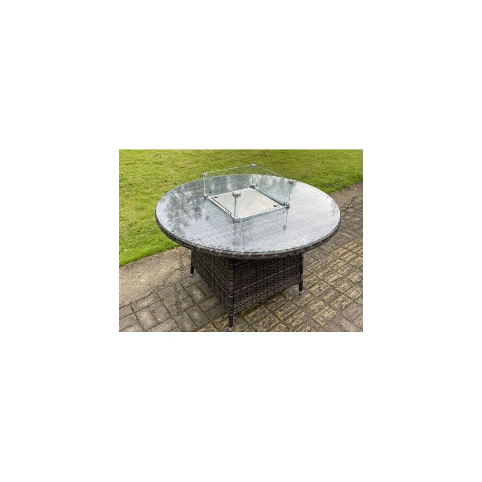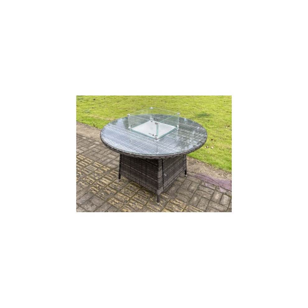 Fimous Rattan Gas Fire Pit Dining Round Table Gas Heater Burner Garden Furniture