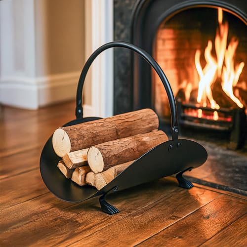 Garden Mile Log Holders For Fireplace Heavy Duty Traditional Easy Carry Metal Storage For Logs Coal Kindling Powder Coated Large Log Baskets For Wood Burner Indoor Fireplace Accessories