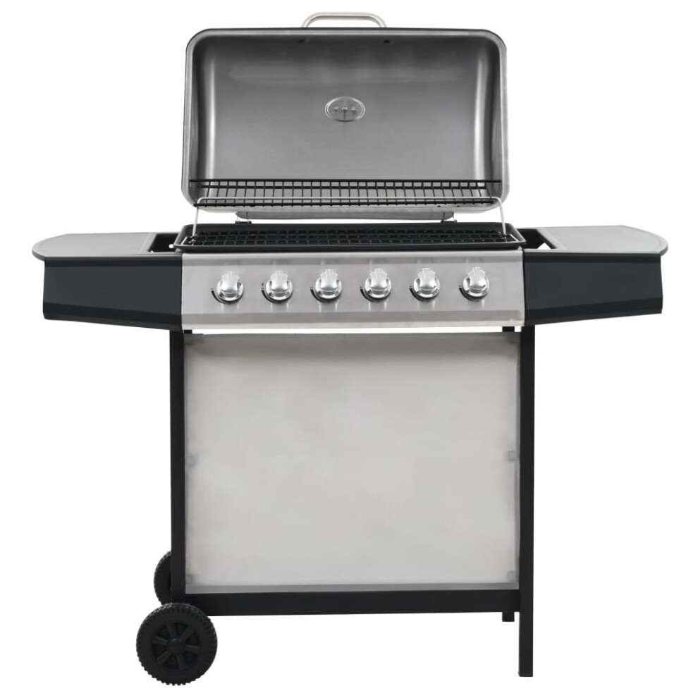 vidaXL Gas BBQ Grill with 6 Cooking Zones Stainless Steel Silver Garden Burner