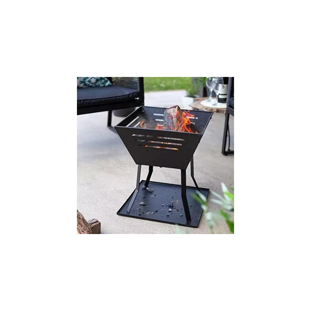 Premium Hortus Square Fire Pit & BBQ Grill â Black Metal Outdoor Garden & Patio Log Burner for Wood & Charcoal