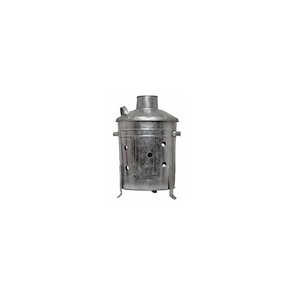 Small Galvanised Steel Incinerator Bin 15L Garden Waste Burner Chimney Lid