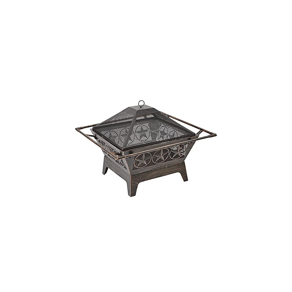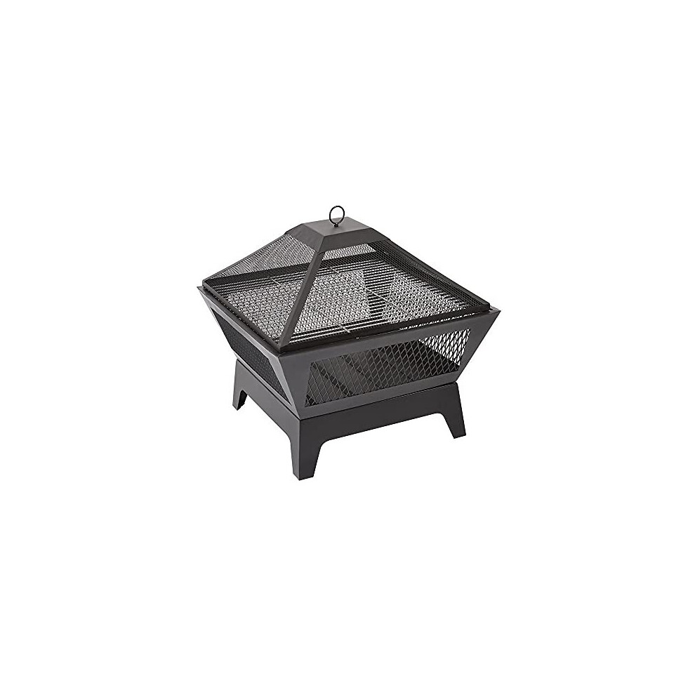 Trueshopping Black Square Outdoor Steel Fire Pit with Mesh Lid - Basket Bowl Fireplace Brazier - Log, Wood & Charcoal Burner Garden Patio Heater