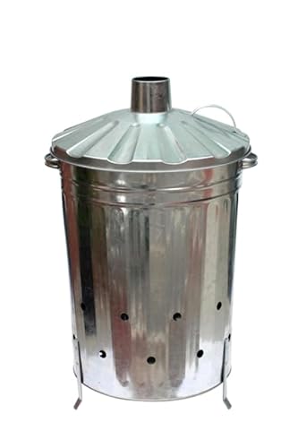Best House | 75L Galvanised Metal Incinerator | Height : 30.7"/78cm Diameter : 18"/46cm | With Lid and Ventilation Holes | Durable Garden Waste Fire Burner for Leaves, Paper, Wood (Pack of 1)