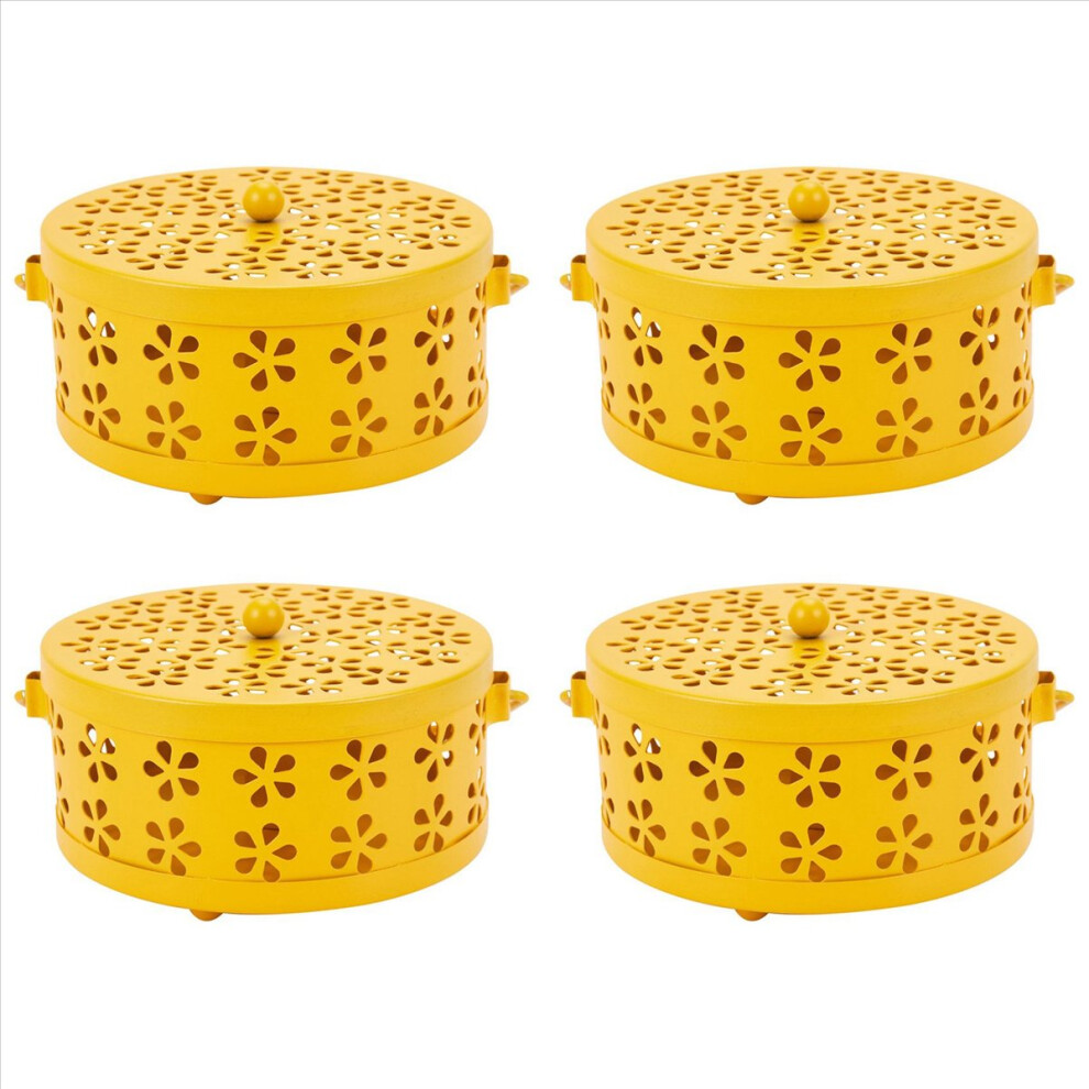4X Nordic Retro Metal Hollow Floral Mosquito Coil Holder Garden Burner Mosquito Repellent Box(Yellow)