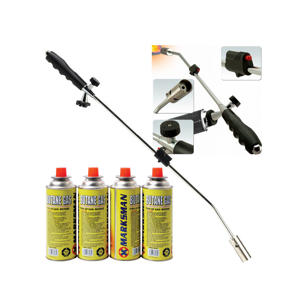 WEED WAND + 4 BUTANE GAS CANISTER BLOWTORCH GARDEN WEEDS KILLER BURNER