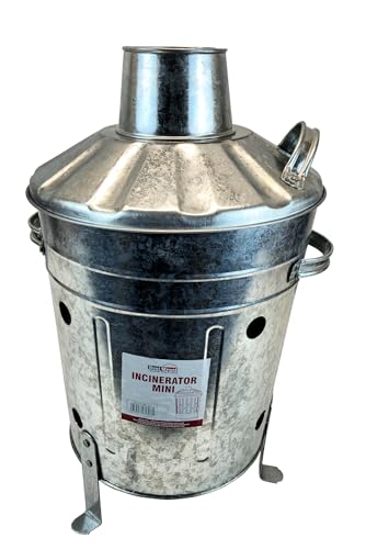 Best House | 15L Small Galvanised Metal Incinerator | Height : 18"/46 cm Diameter : 10.2"/26 cm | With Lid and Ventilation Holes | Durable Garden Waste Fire Burner for Leaves, Paper, Wood (Pack of 1)