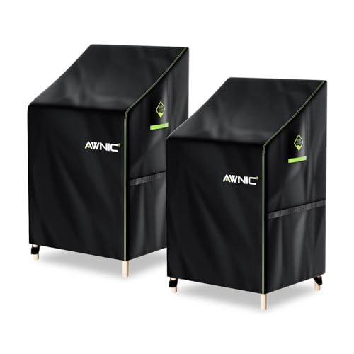 AWNIC 2 Packs Garden Chair Covers Waterproof 65x75x120/85cm, 420D Patio Stacking Chair Covers for Outdoor Chairs Storage with Air Vents Waterproof Windproof Tear Resistant Anti-UV