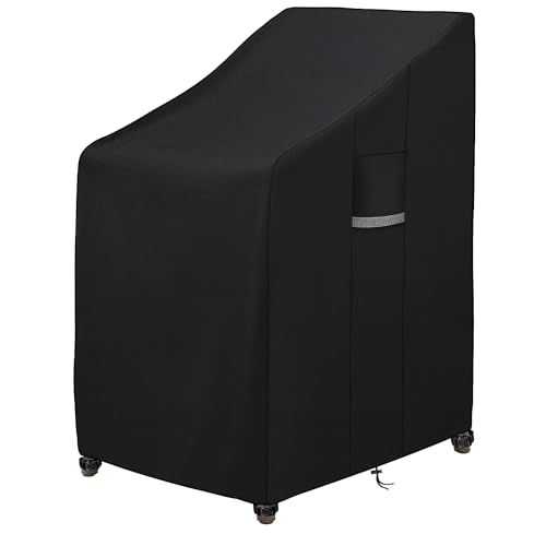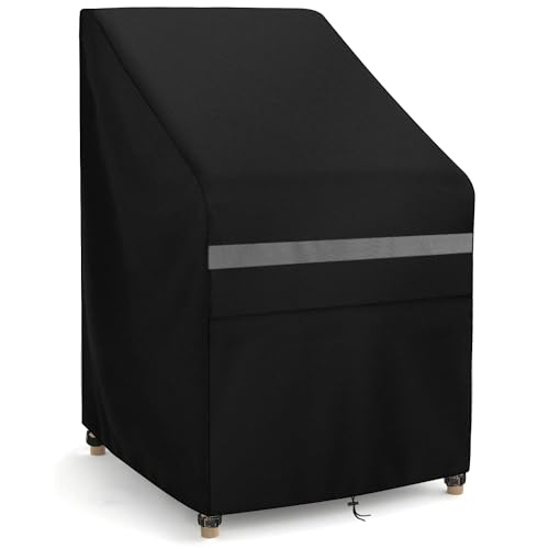BROSYDA Garden Chair Covers Waterproof 65x65x80/120cm with Air Vent, Heavy Duty 600D Outdoor Stacking Chair Cover with PU Coating, 4 Buckles and Drawstring Outdoor Furniture Covers