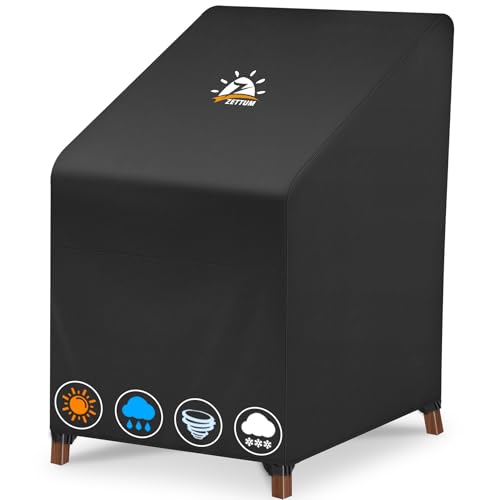 Zettum 70x90x80/120cm Garden Stacking Chair Covers Waterproof 600D PU Coating Outdoor Chair Covers Anti-UV Heavy Duty Stackable Chair Cover, Durable Windproof Patio Garden Chairs Cover