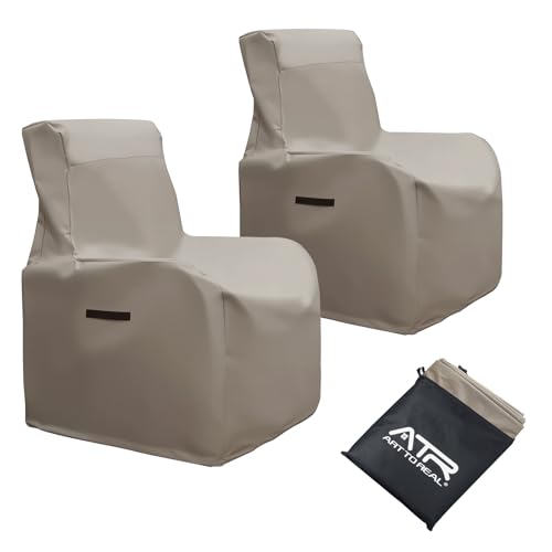 ATR ART TO REAL 2 Pcs Garden Chair Covers Waterproof,Recliner Chair with Adjustable Hem Cord,Air Vent Windproof Anti-UV Patio Chair Covers for Stacking Chair,Recliner Chair,Khaki