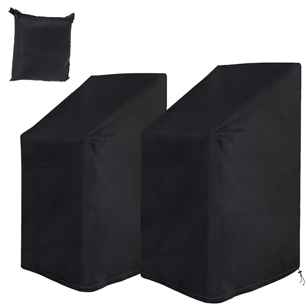 Garden Chair Covers, Pack of 2, Stackable Garden Chair Covers with Rope and Buckle,, Windproof,, Black (75 x 75 x 120 cm)