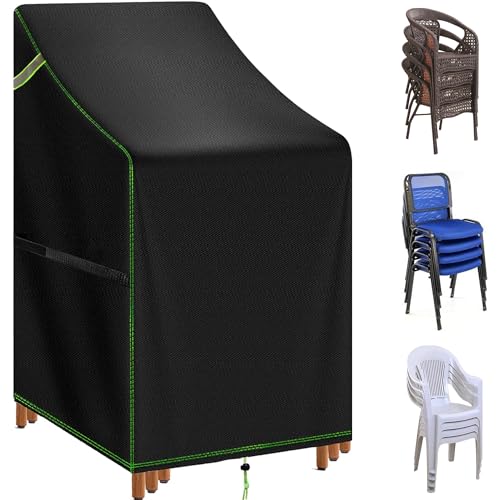 TIFILE Garden Chair Covers Waterproof, 420D Oxford High Back Patio Stacking Chair Protection, Outdoor Stackable Chairs Cover with Drawstring, 65x75x80/120cm