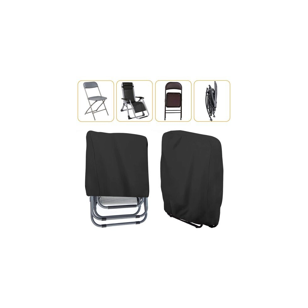 Dokon Garden Folding Reclining Chair Covers Waterproof, Windproof, Anti-UV, Heavy Duty Oxford Fabric Outdoor Folding Chair Covers, Patio Sunbed Cover, Sun Lounger Cover (96x84cm) - Black