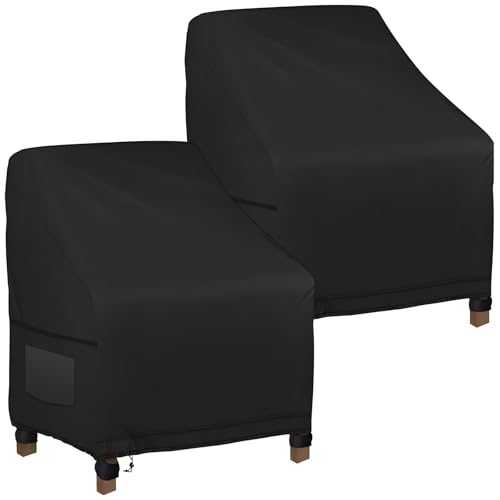 LPQKCcY Garden Chair Covers Waterproof 2 Pack, Patio Rocking Chair Cover Lawn Chair Covers 600D Heavy Duty Oxford Cloth, Large Covers for Lounge Lawn Deep Seat Black 35.04" W x 38.19" D x 29.13" H