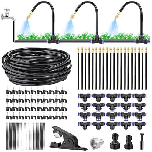 Automatic Drip Irrigation Kit 66FT - DIY Garden Watering System with 20Pcs 360°Adjustable Bendable Brass Mist Nozzles, Faucet Adapter, Hose & Cutters for Greenhouse Yard Cooling Humidifying