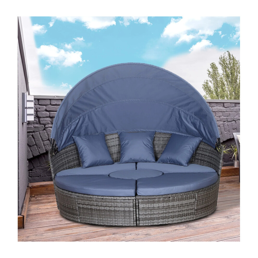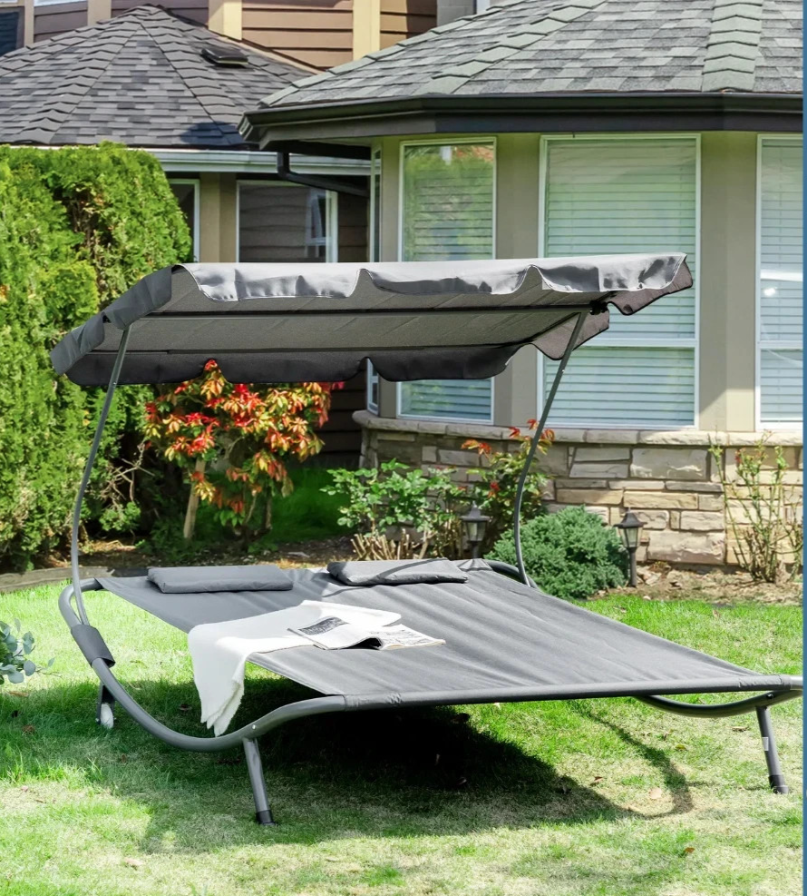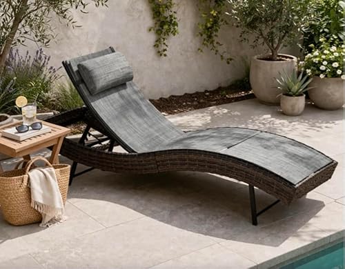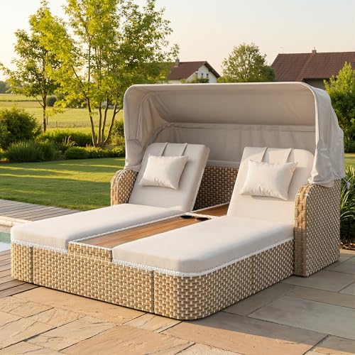 Keeushr Adjustable Canopy Sun Lounger Foldable Day Bed Steel Frame Green for Garden Beach Relaxation