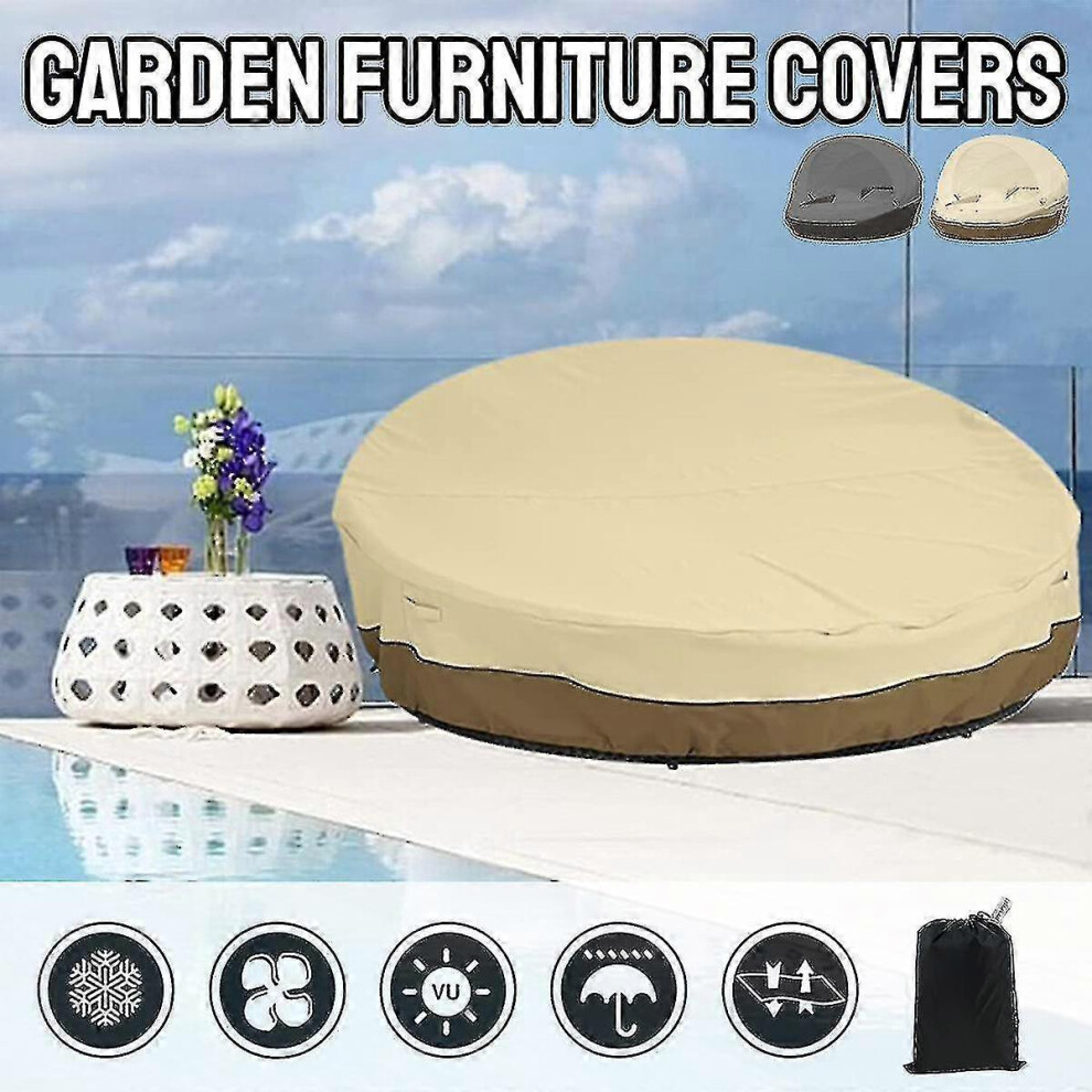 (khaki, One size) Outdoor Daybed Cover, Patio Daybed Cover Waterproof Dustproof Garden Patio Outdoor Daybed Furniture Cover Round Outdoor Garden Furni