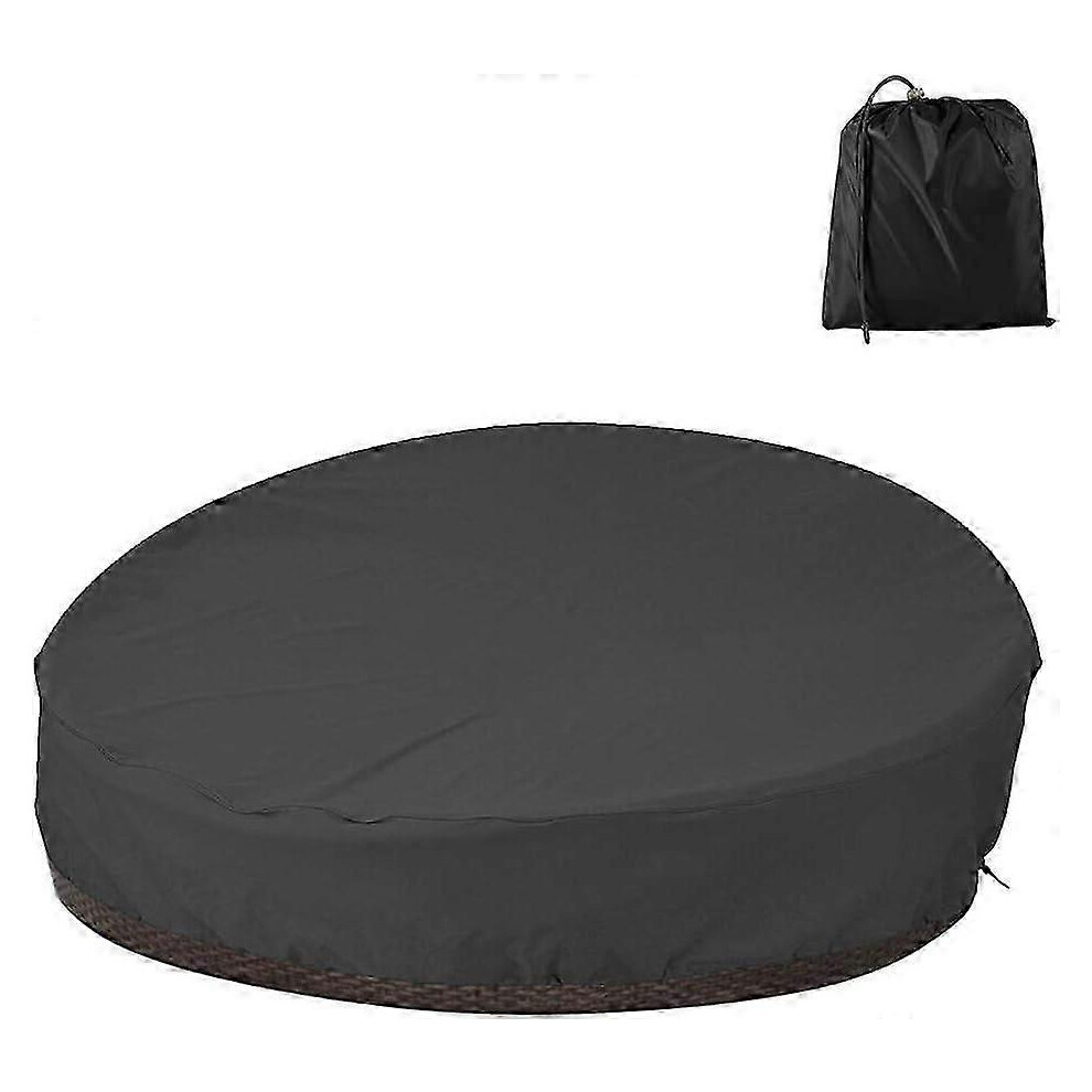 Round Daybed Cover Black 210D Silver-Coated Oxford Cloth, Waterproof Dustproof, Garden Daybed Cover 190x89cm
