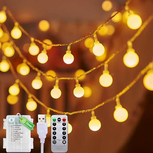 taiyongkang Globe Fairy Lights Battery Powered or USB, 12m/39ft 100 LED Warm White Ball String Lights with Remote & Timer, 8 Modes, Indoor Outdoor Bedroom Garden Camping Waterproof Fairy Lights