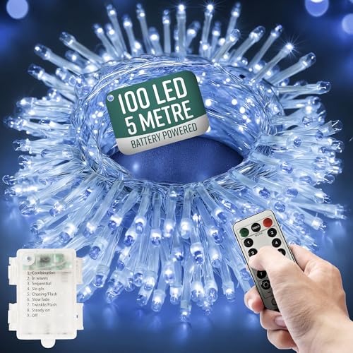Globirite Garden Fairy Lights Battery Operated - 100 LED String Lights with Remote - 8 Lighting Modes - Battery Fairy Lights Indoor & Outdoor - Bedroom Aesthetic - (Cool White LED)