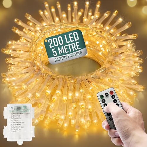 Globirite Garden Fairy Lights Battery Operated - 200 LED String Lights with Remote - 8 Lighting Modes - Battery Fairy Lights Indoor & Outdoor - Bedroom Aesthetic - (Warm White LED)