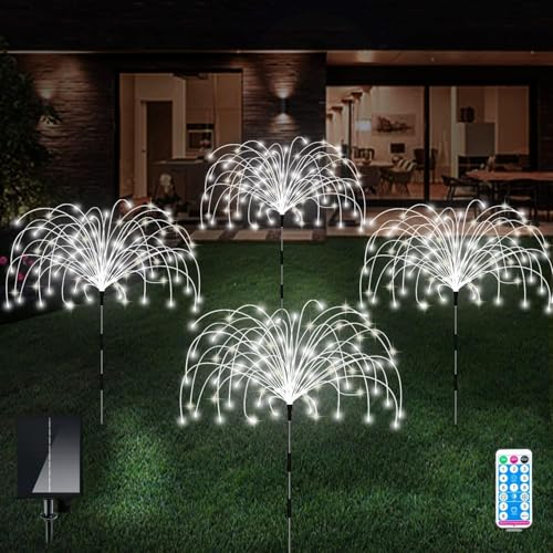 AcaJoe Solar Garden Fairy Lights 4 Pack 480 LED Outdoor Firework Landscape Path String Lights Waterproof 8 Lighting Modes Remote Control for Backyard Christmas Party Decorative (White)