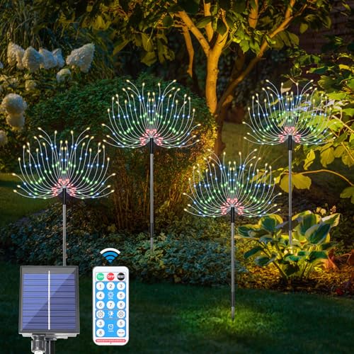 AGM Solar Pathway Lights Outdoor, 4 X 120 LED Firework Lights with 8 Lighting Modes Pathway Solar Fairy Garden Lights for Patio Lawn Backyard Flower Bed Decorations