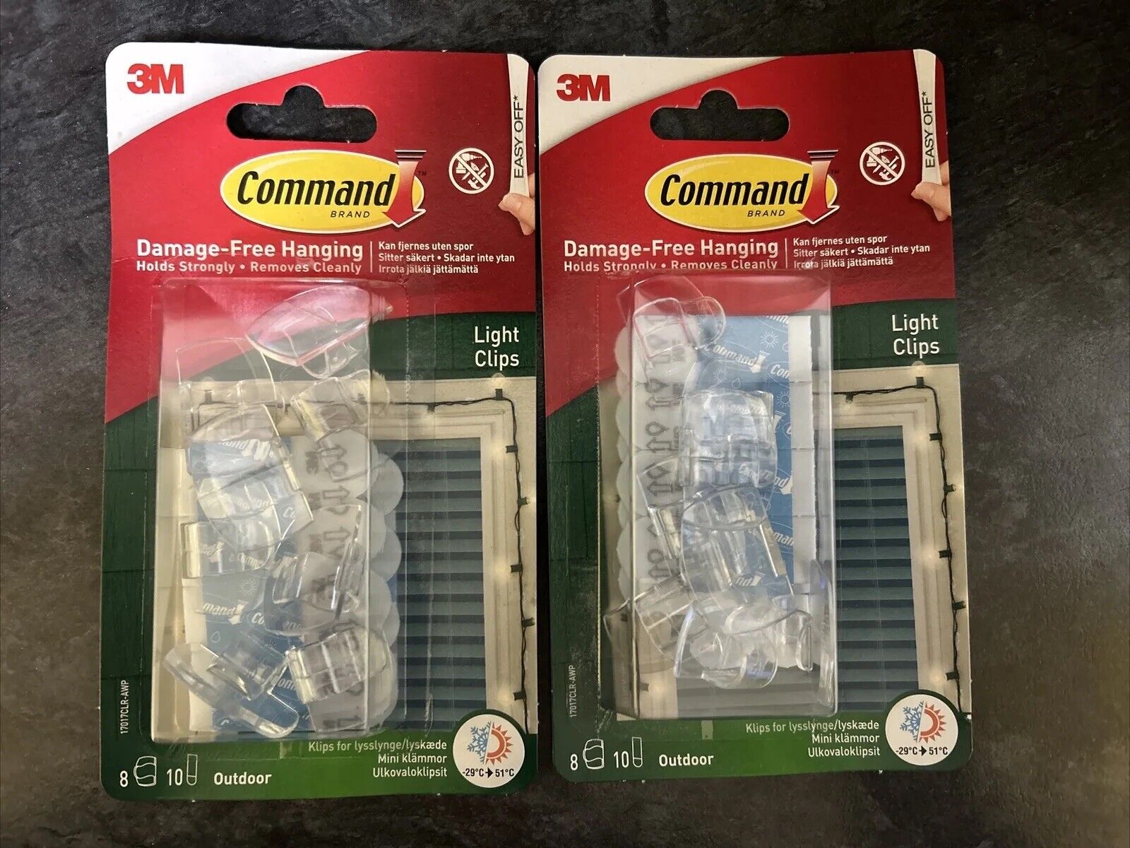 2 PACKS 3M Command 8 Outdoor Light Clips ~ Hang Garden Lights ~Fairy Lights NEW