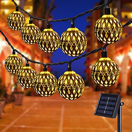Solar String Lights Outdoor, 50LED 8 Modes Garden Lights Solar Fairy Lights Waterproof 23ft Lighting for Gazebo, Fence, Wall, Patio, Christmas, Wedding Decoration(Warm White)