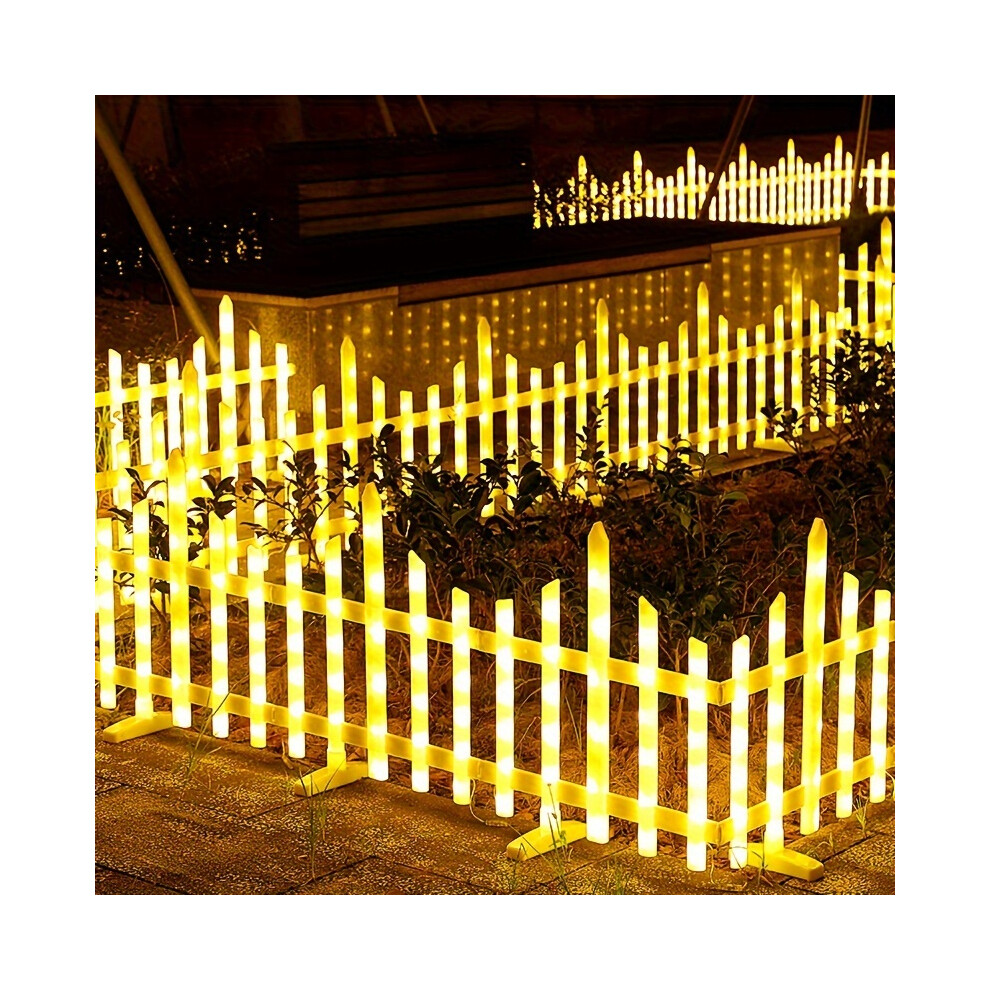 (Warm White, 2.8m(110.24in)) Solar-Powered Plastic Garden Fence Lights, Semi-Flush Mount In-Ground Outdoor Landscape