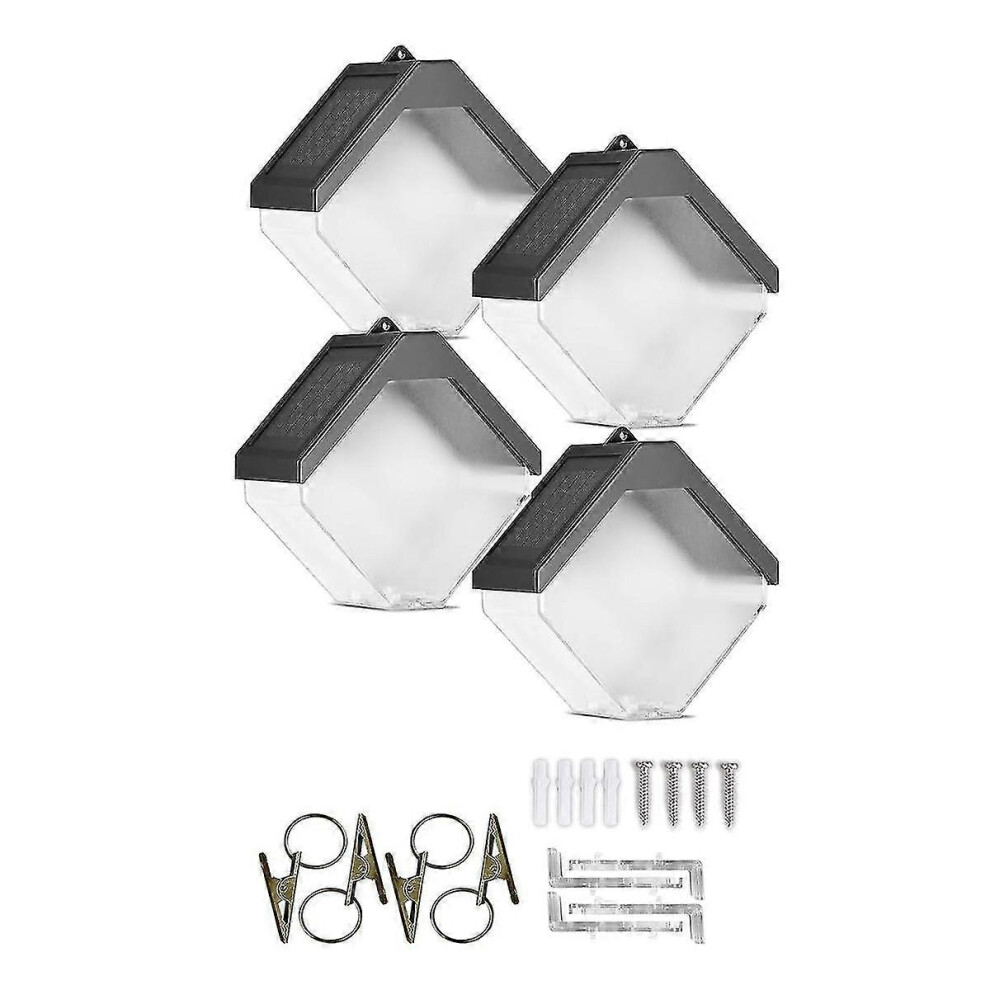 4 Pcs Solar Powered Led Garden Fence Wall Lights Patio Security Lamps