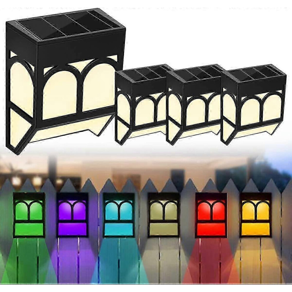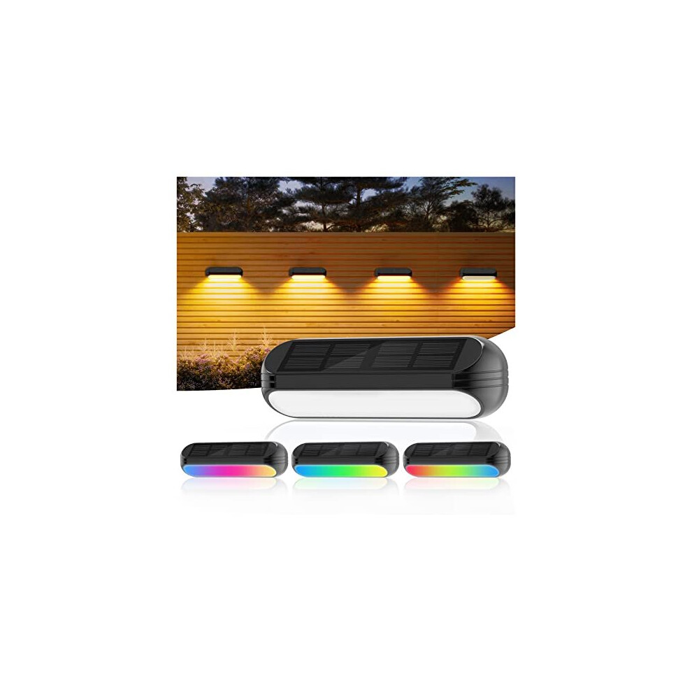 (As show, One size) 4 Pack Solar Garden Fence Lights - Waterproof Wall Lights for Deck Fence Patio Stairs Lawn Landscape (Warm White/Color Changing)