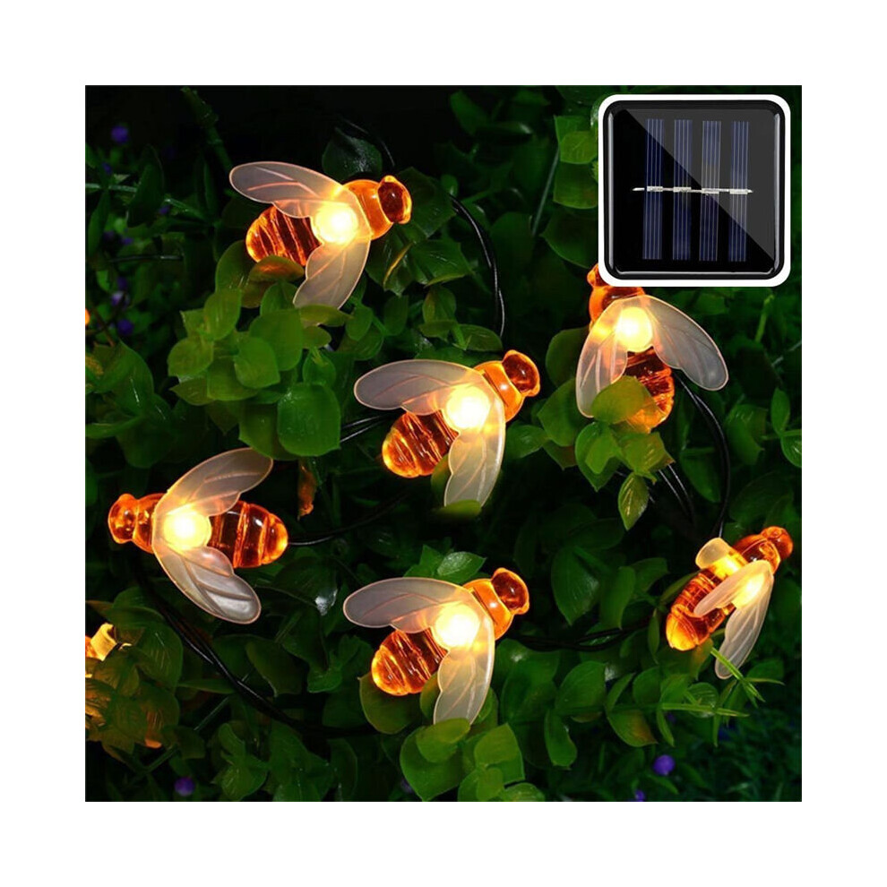 20/50LED Solar Powered Cute Honey Bee Led String Fairy Light Bee Outdoor Garden Fence Patio Christmas Garland Lights